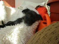 Jimmy hat die Eigenart, wenn wir mit ihm spielen, ein wenig zu knurren, was aber in keinster Weise mit "Böse" zu verwechseln ist. Er wird gern bekuschelt, und, wenn er darf, schmust er auch gern auf unserem Schoß