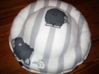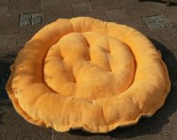 Dieses Bett kann als flaches Kissen sowie (zusammengezogen) als Körbchen variiert werden