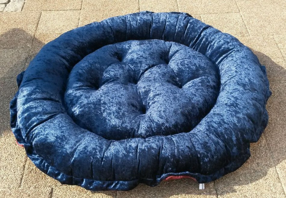 Dieses Bett kann als flaches Kissen sowie (zusammengezogen) als Körbchen variiert werden.